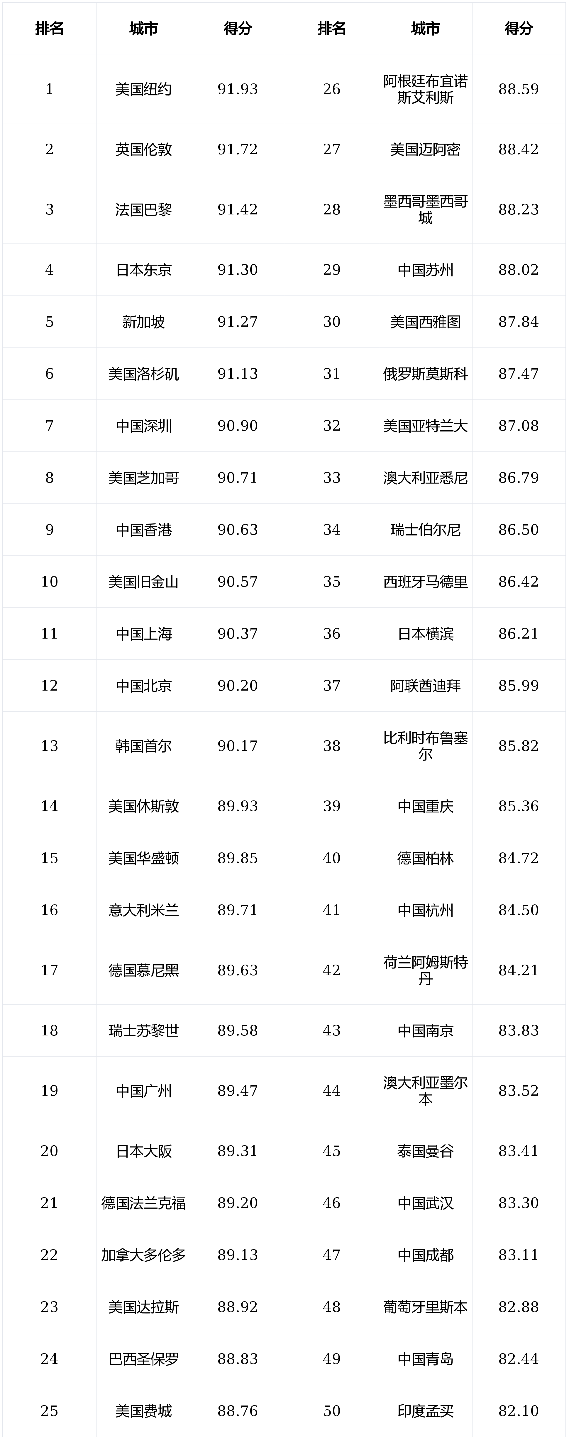 全球城市合作力指正在全球一体化和市场经济从导视阈下,一个城市经济实力、资本潜力、文化蕴力、科技动力、立异能力、张力、办理效力、平易近生保障等诸多要素分析而成的分析合作劣势。《GN全球城市合作力评价目标系统》由包罗城市经济实力指数、资本潜力指数、文化蕴力指数、科技动力指数、立异能力指数、张力指数、办理效力指数、平易近生保障指数正在内的8项一级目标、32项二级目标形成。